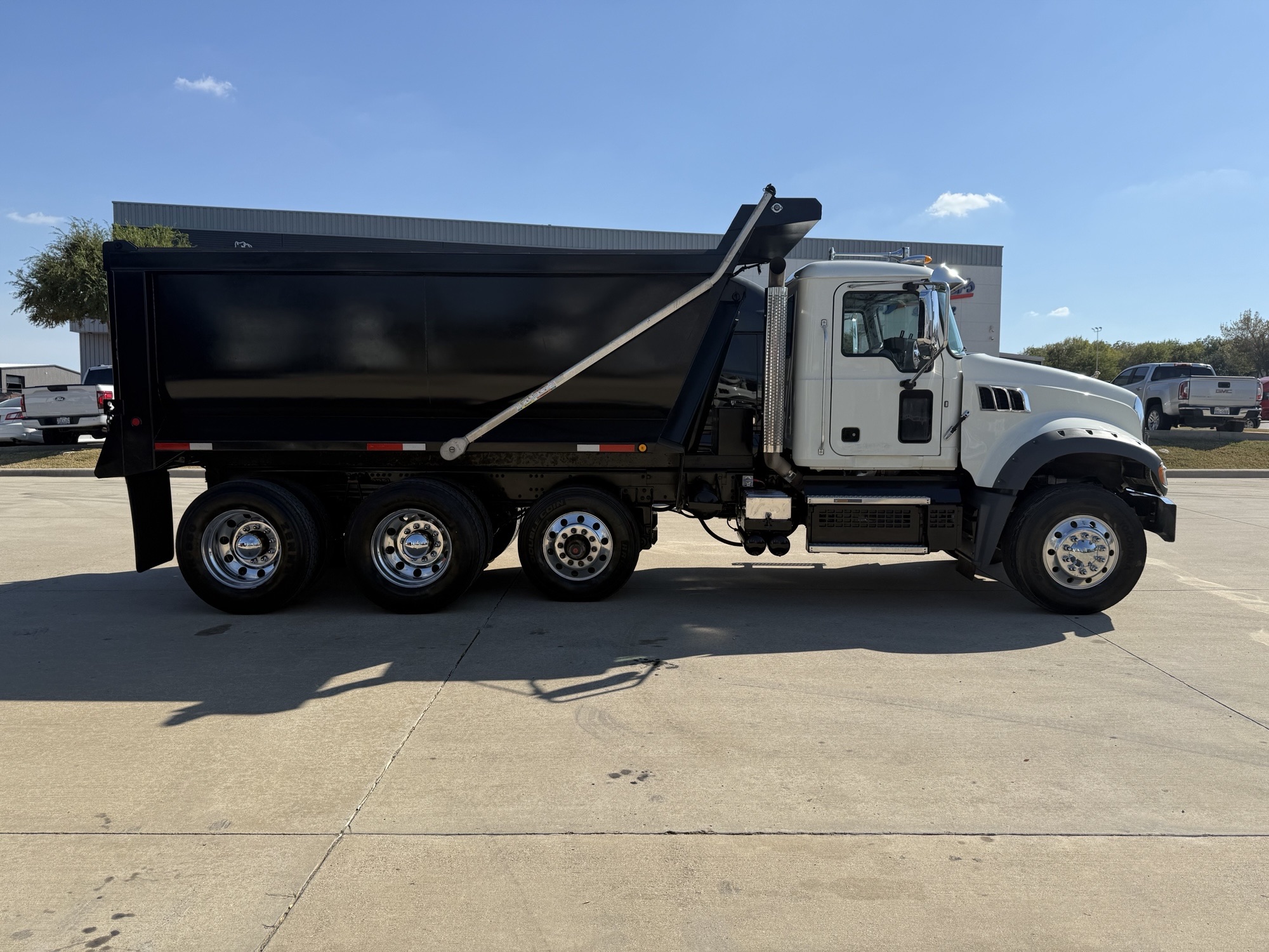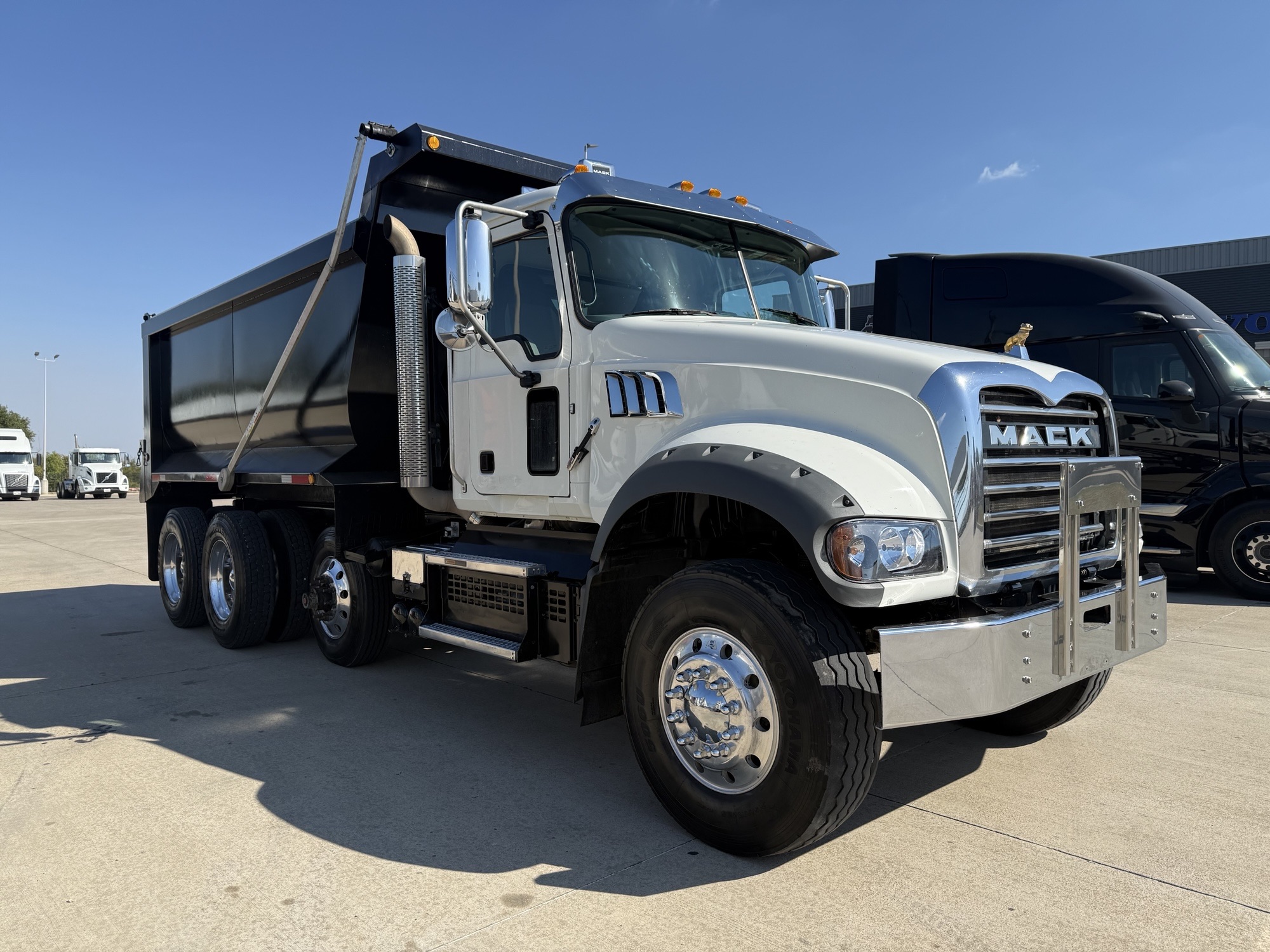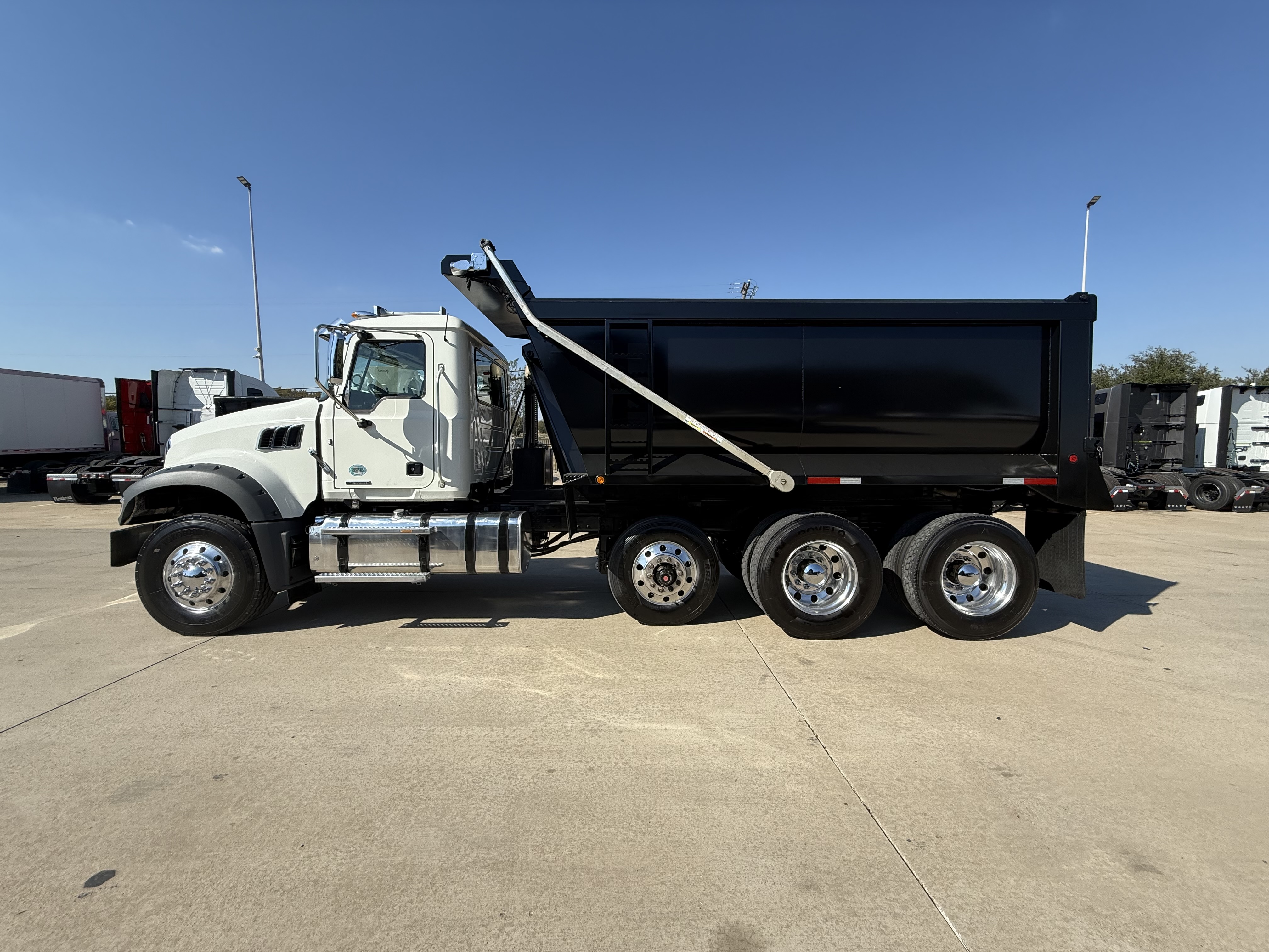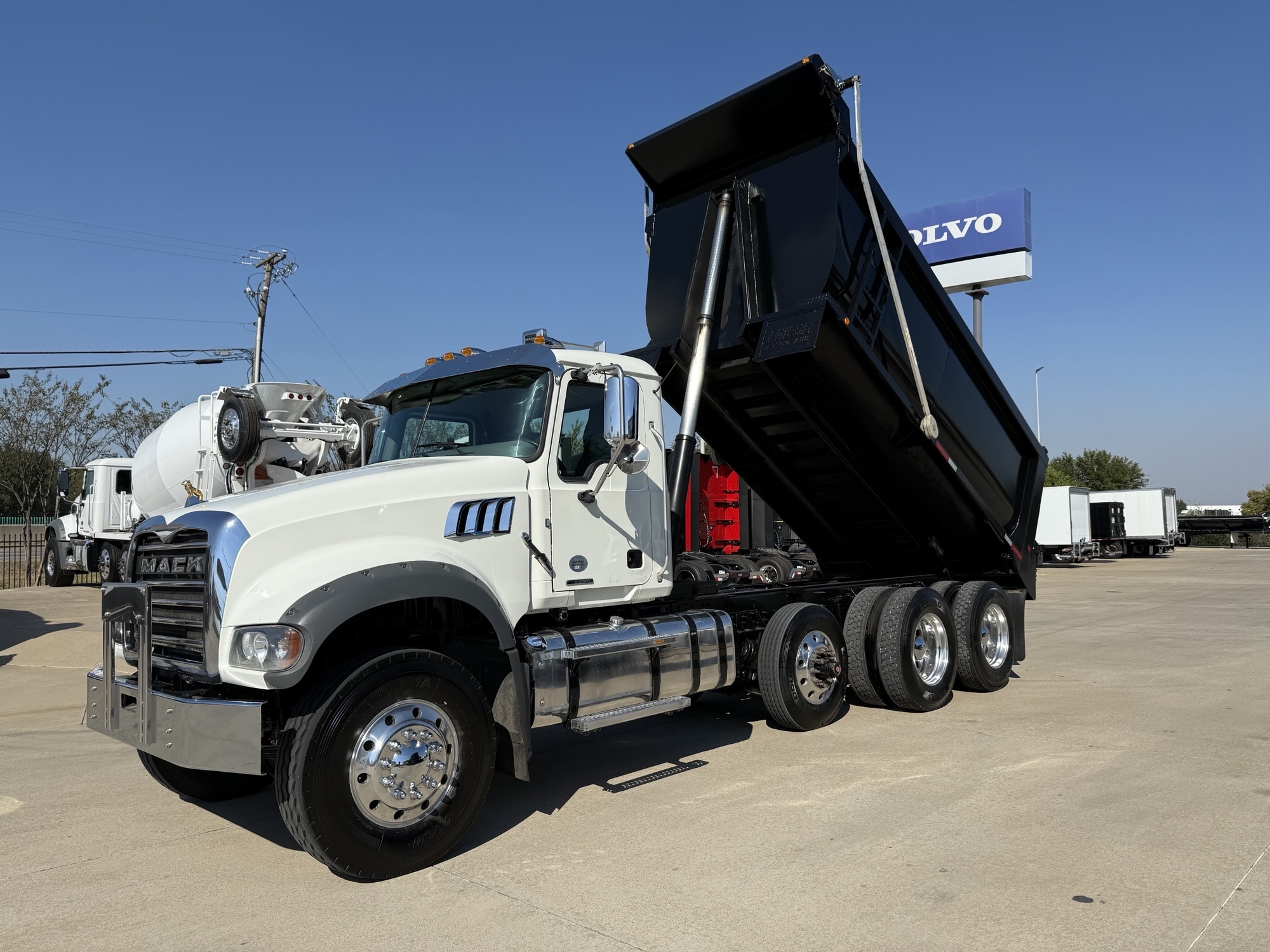 Mack GR64F Granite Tri-Axle Dump Truck, Mack MP7, 425HP, MACK TMD12AFO-HD mDRIVE HD 12 SP-(OVERDRIVE) Transmission, 18000# Steer, MACK S402R Rear with Power Divider Lockout and 3.38 Ratio, Mack mRide Suspension, 13200# Pusher Axle, 15’ Hilbilt Round Demo Dump Box. Multiple Units Coming.