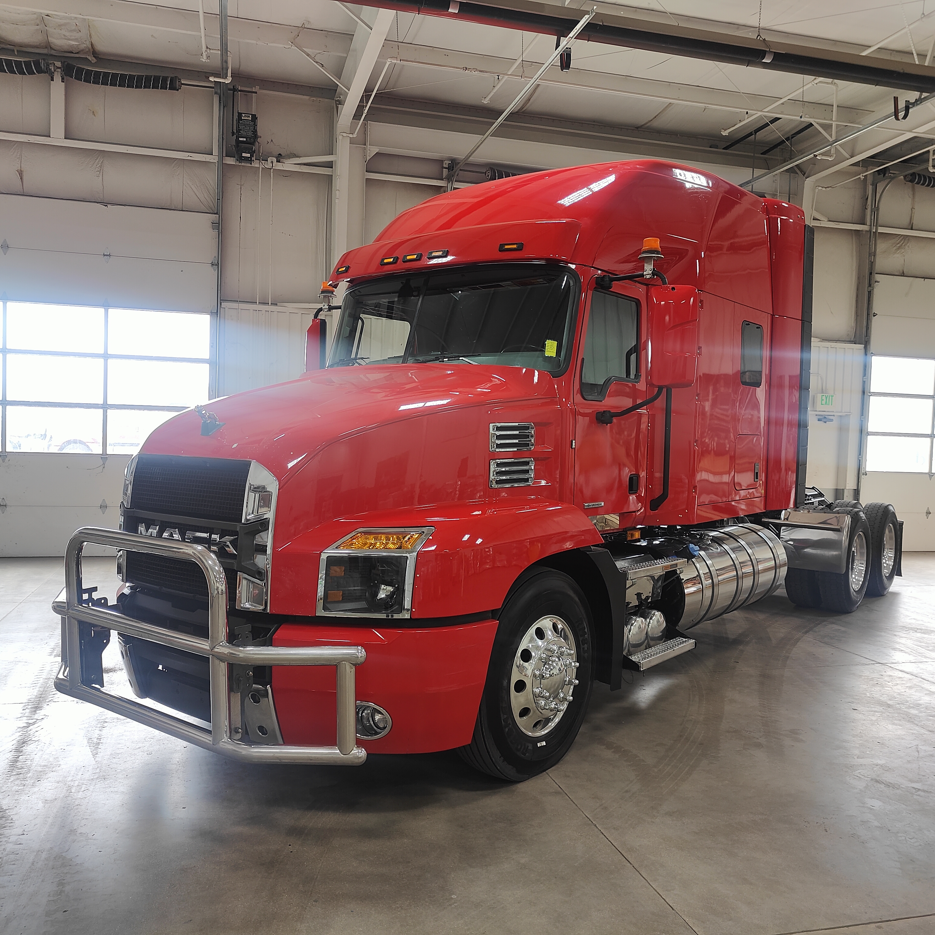 Low mile 505 hp/1,860 ft.lb Mid Roof Mack Anthem. Great Tanker or Flatbed spec with Head Ache Rack and ultra Smooth riding on a 250" w.b Maxlite 40 Air ride with Disc Brakes. Leather Steel Gray interior with Refrigerator & TV prep.