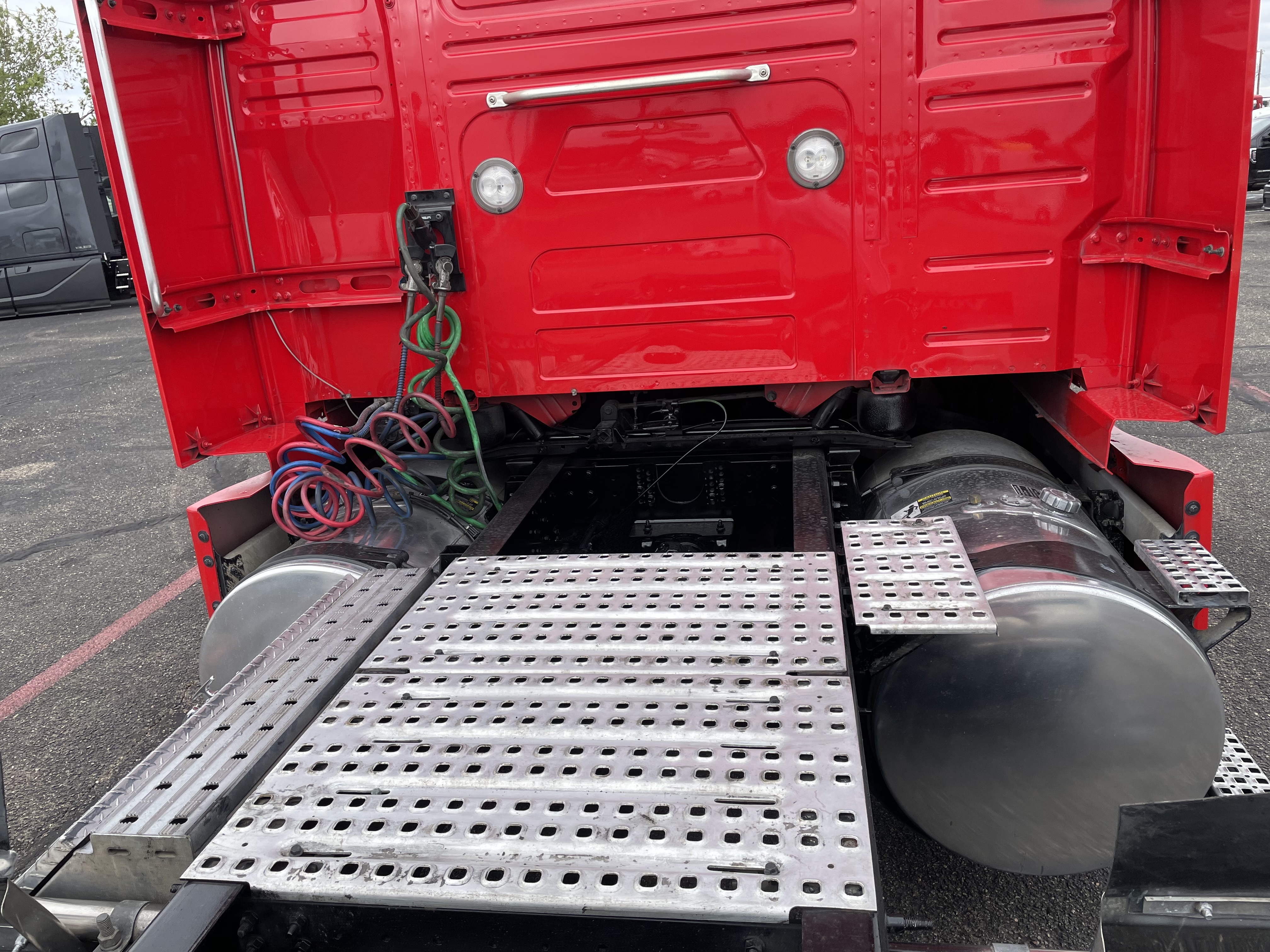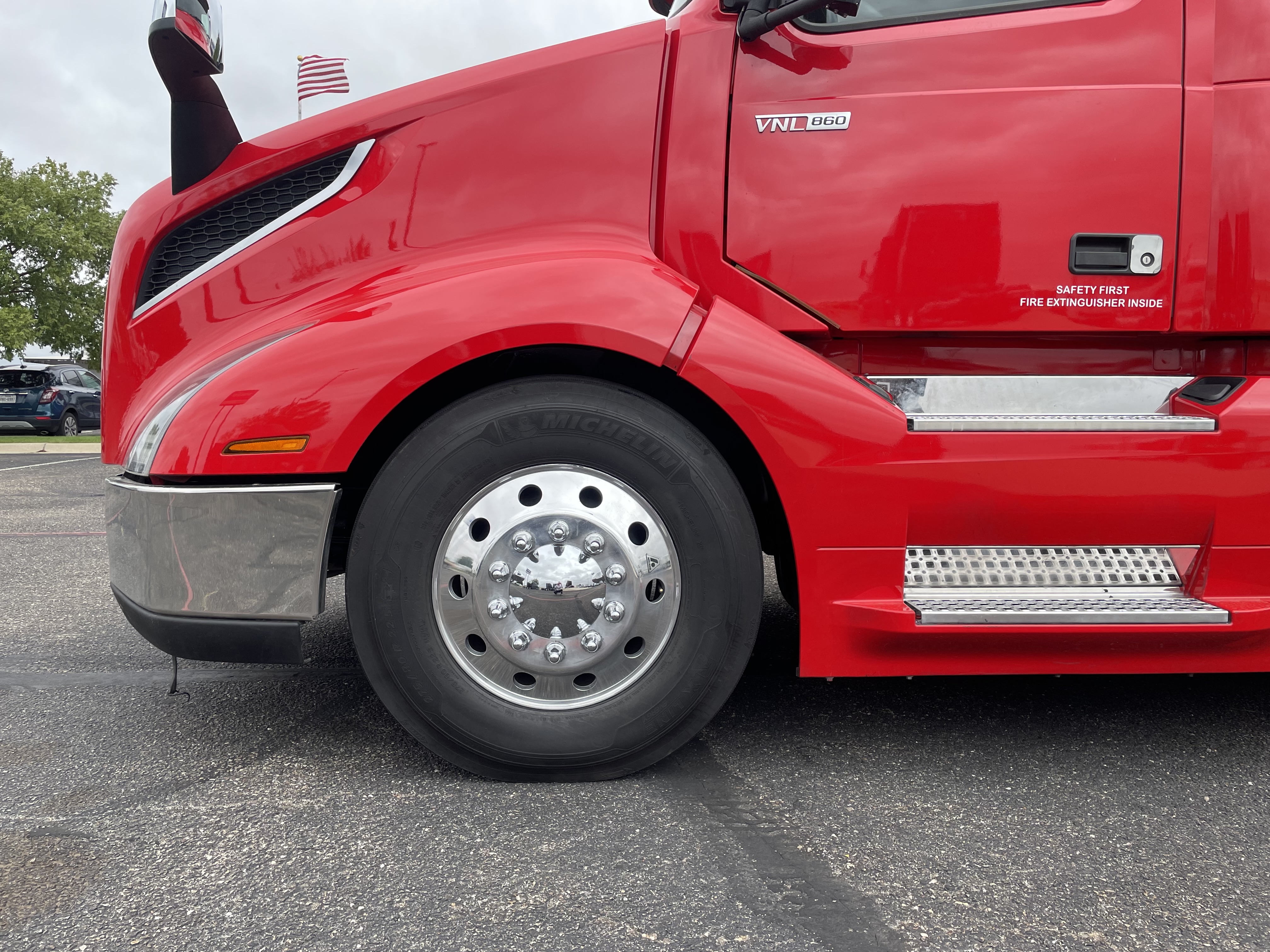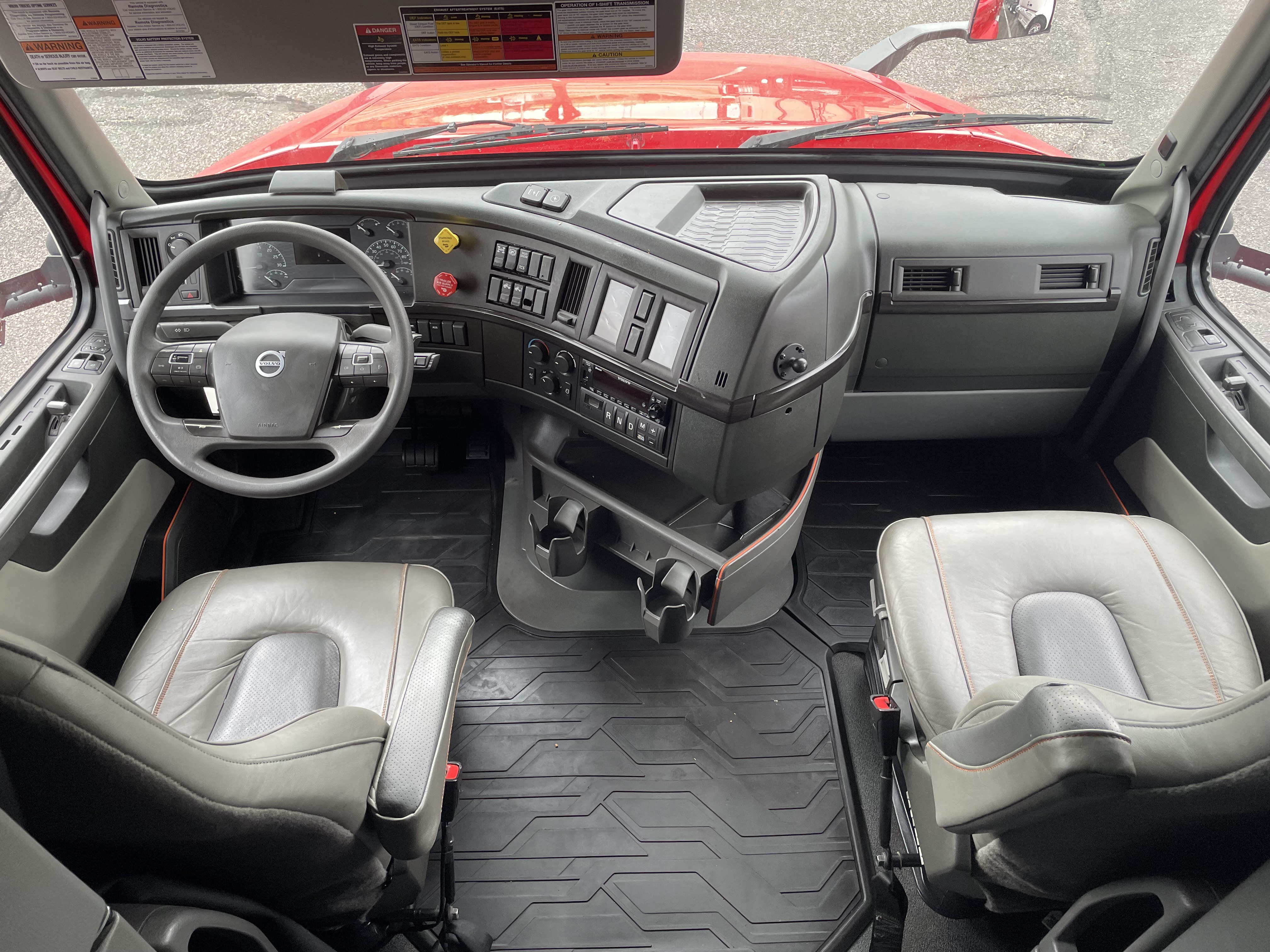 2023 used red Volvo VNL64T860 Sleeper. Volvo D13 engine with 445HP. Volvo I-Shift 12 speed automated transmission. Front axle weight 13,200 and rear axle weight 38,000. Rear ratio 2.64 and wheelbase 252. Air Ride suspension on a tandem axle. JOST fifth wheel, virgin rubber tires, and double bunk beds.