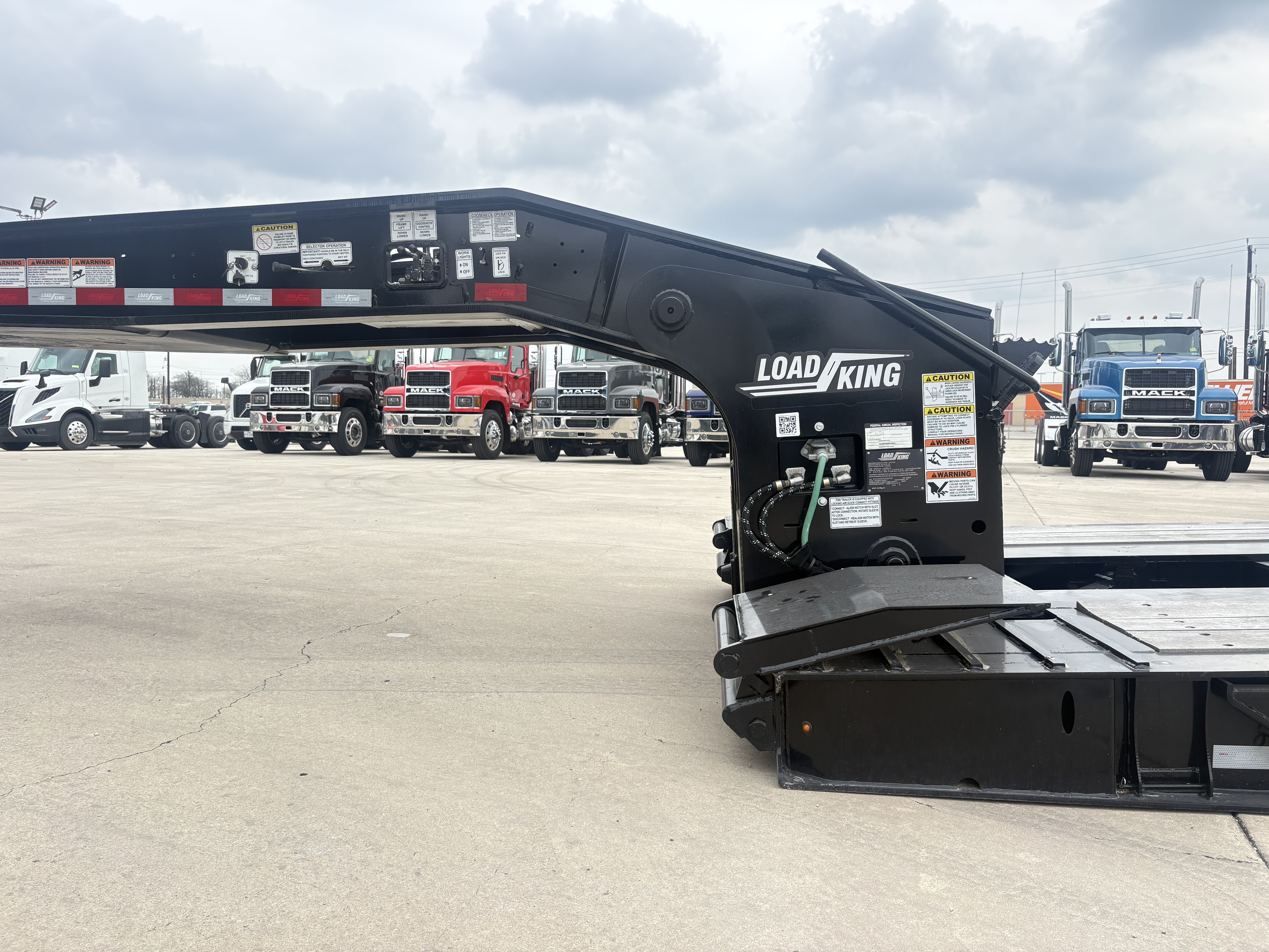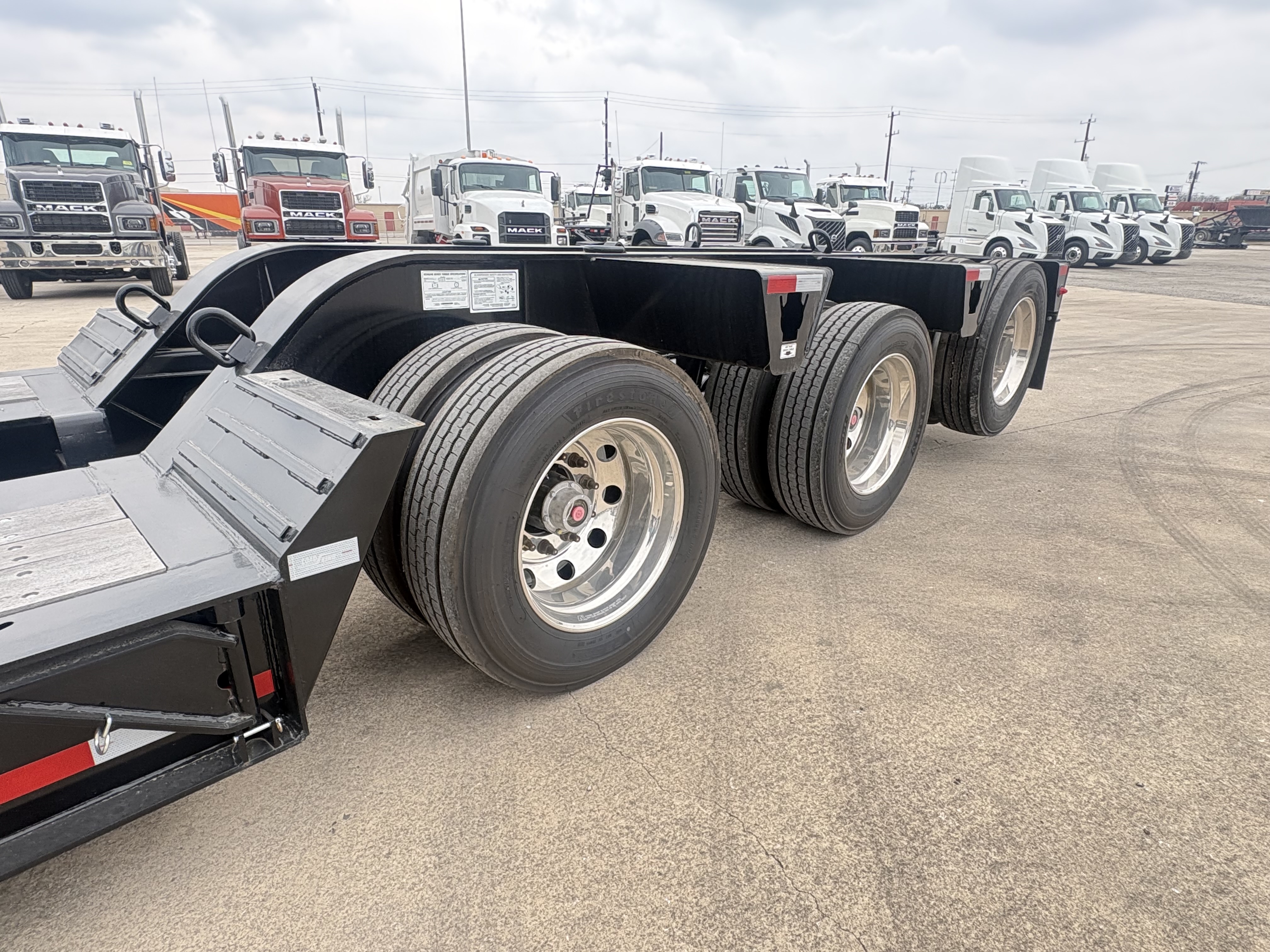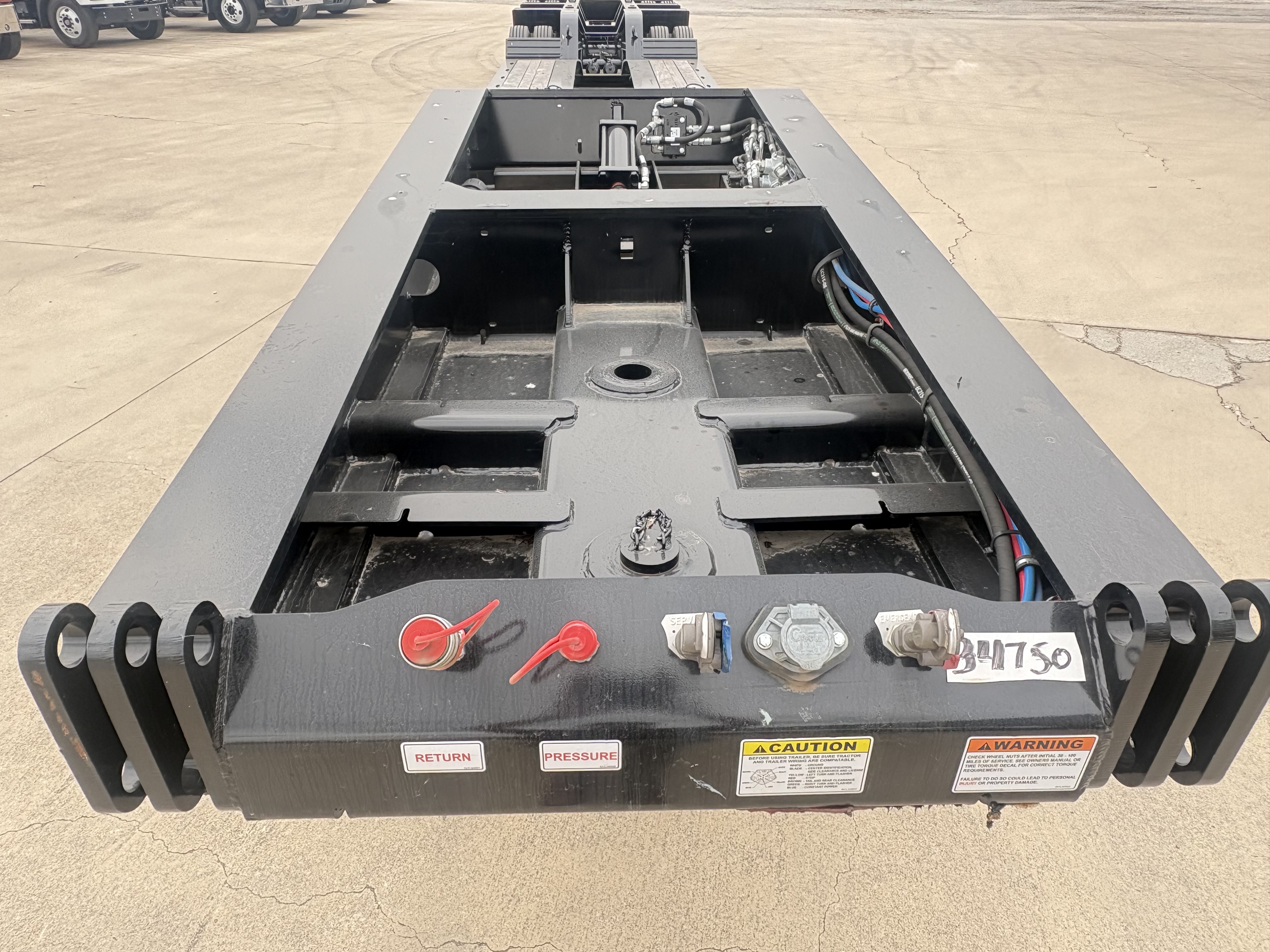 60 Ton, 8'-6" Wide, 20" Loaded Deck Height, 12'-9" Gooseneck,13 HP Honda IGX Motor (Base Mount), 31" Front Flip Ramps, LED Work lights, 26' Deck, 8' Bucket Well, 4" Stub In Crossmembers, Upper Flange Reinforcement, 5' Tool Box at Front Deck, 275/70R22.5 Tires, Outside Aluminum Wheels, 3rd Axle Lift, Rear Strobes, Manual Raise & Lower Valve, Lower Flange Reinforcement, 27,500 lb. Axles, Price Includes F.E.T.