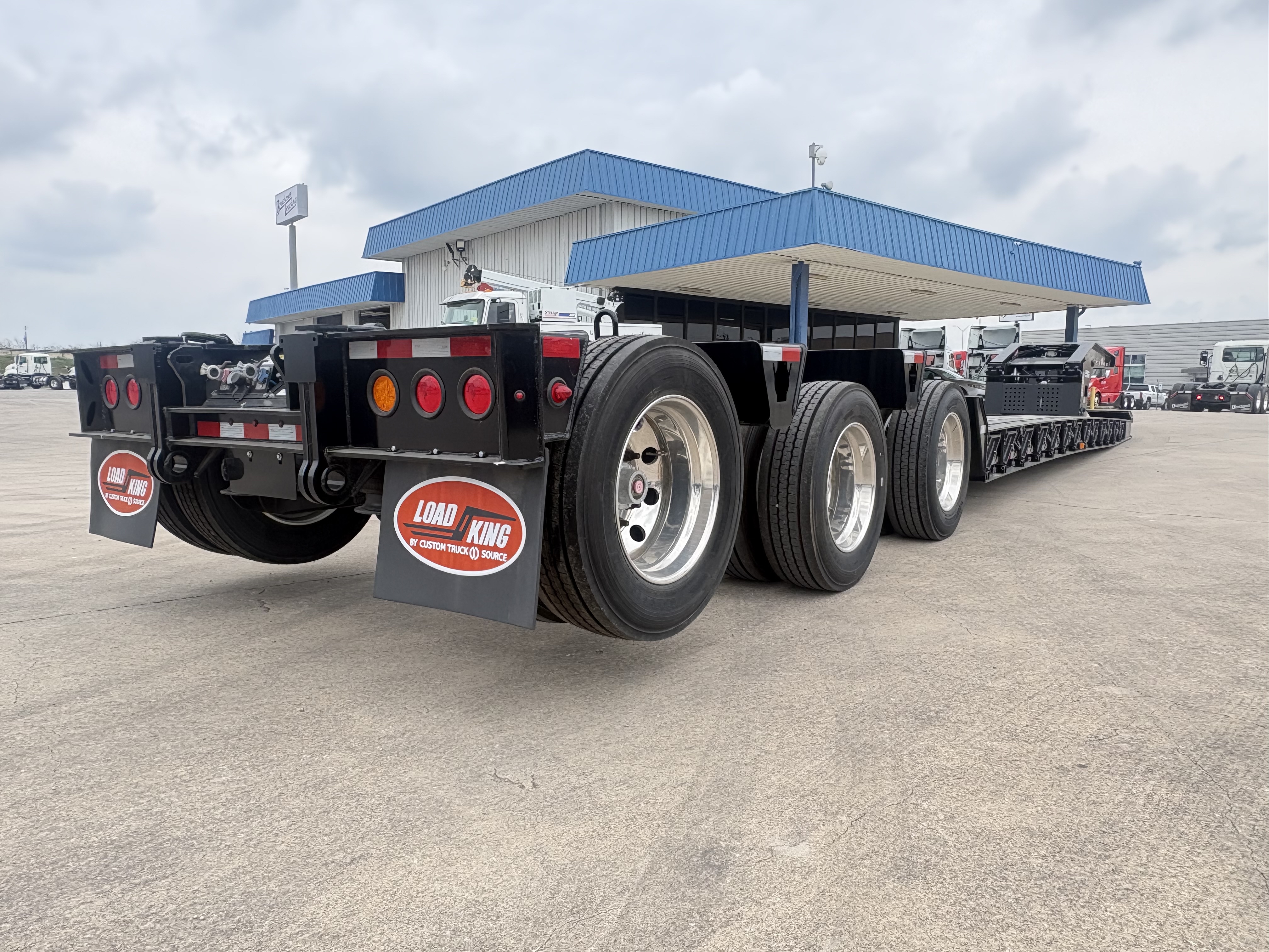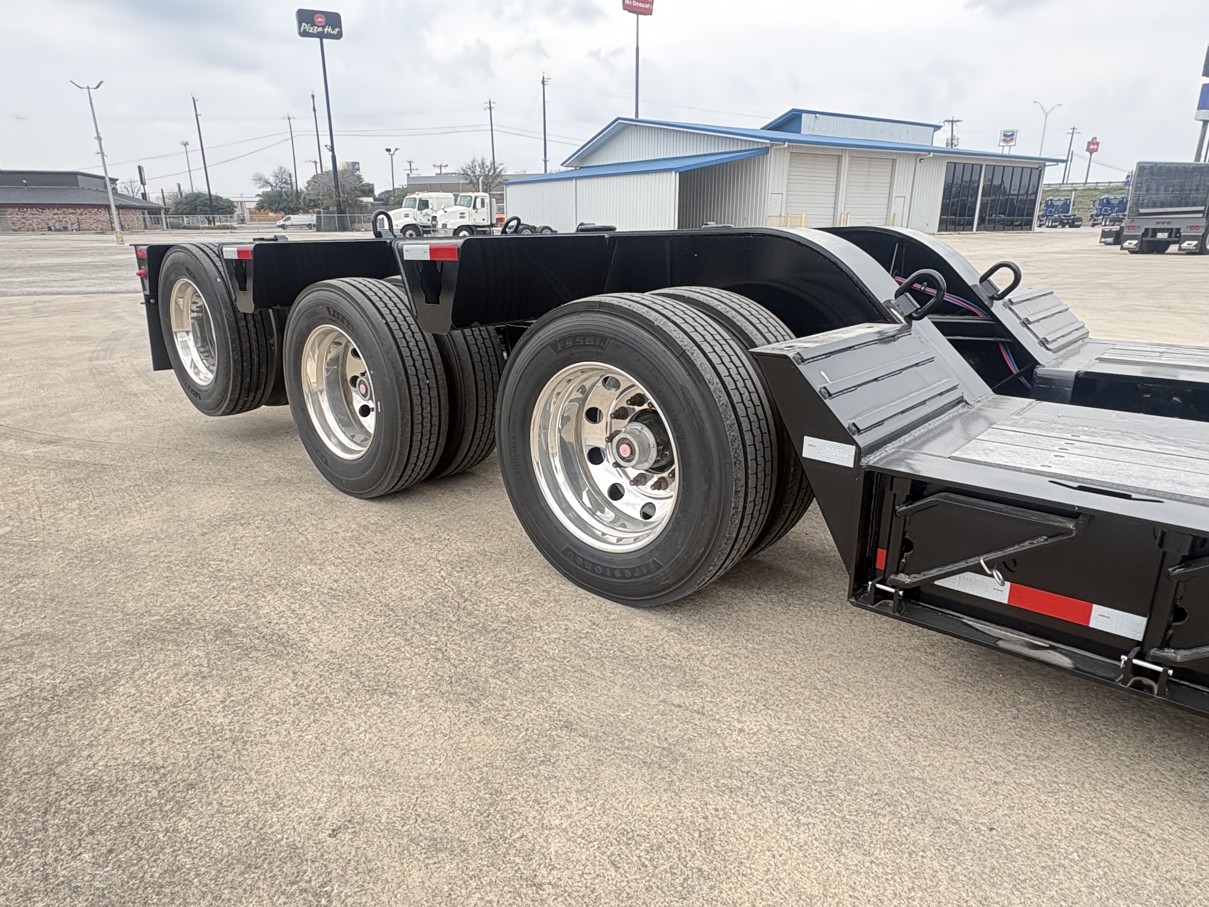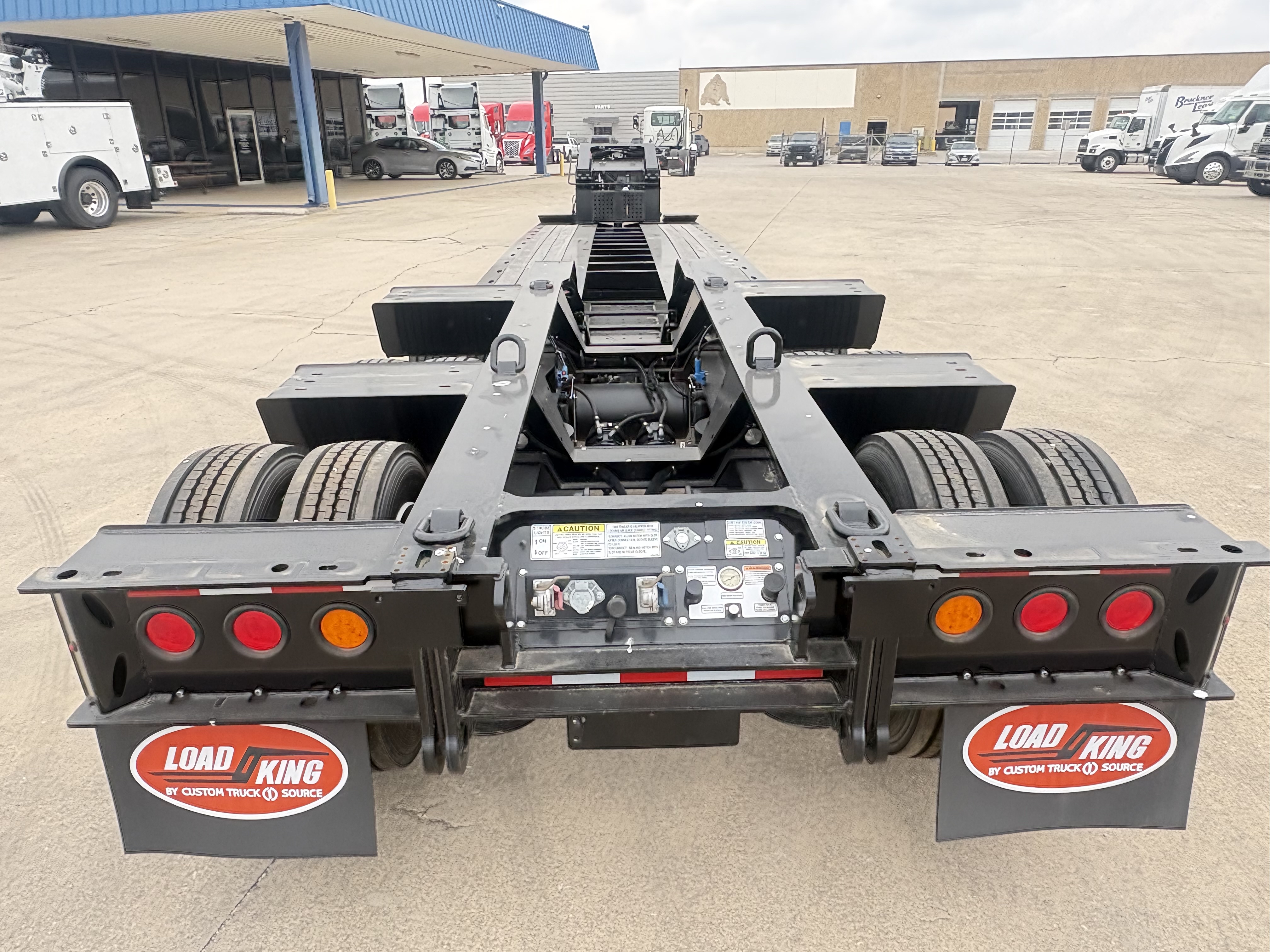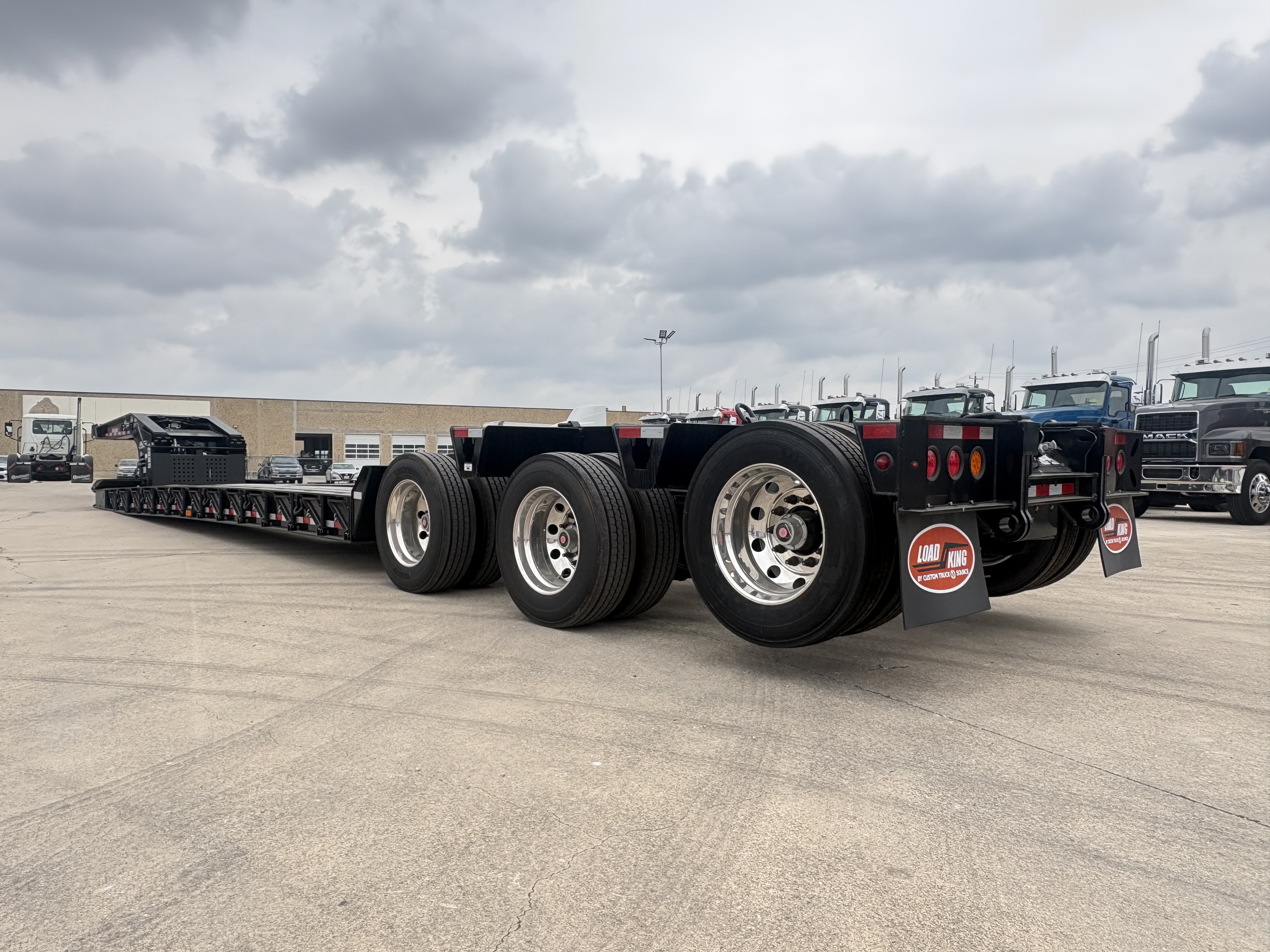 60 Ton, 8'-6" Wide, 20" Loaded Deck Height, 12'-9" Gooseneck,13 HP Honda IGX Motor (Base Mount), 31" Front Flip Ramps, LED Work lights, 26' Deck, 8' Bucket Well, 4" Stub In Crossmembers, Upper Flange Reinforcement, 5' Tool Box at Front Deck, 275/70R22.5 Tires, Outside Aluminum Wheels, 3rd Axle Lift, Rear Strobes, Manual Raise & Lower Valve, Lower Flange Reinforcement, 27,500 lb. Axles, Price Includes F.E.T.
