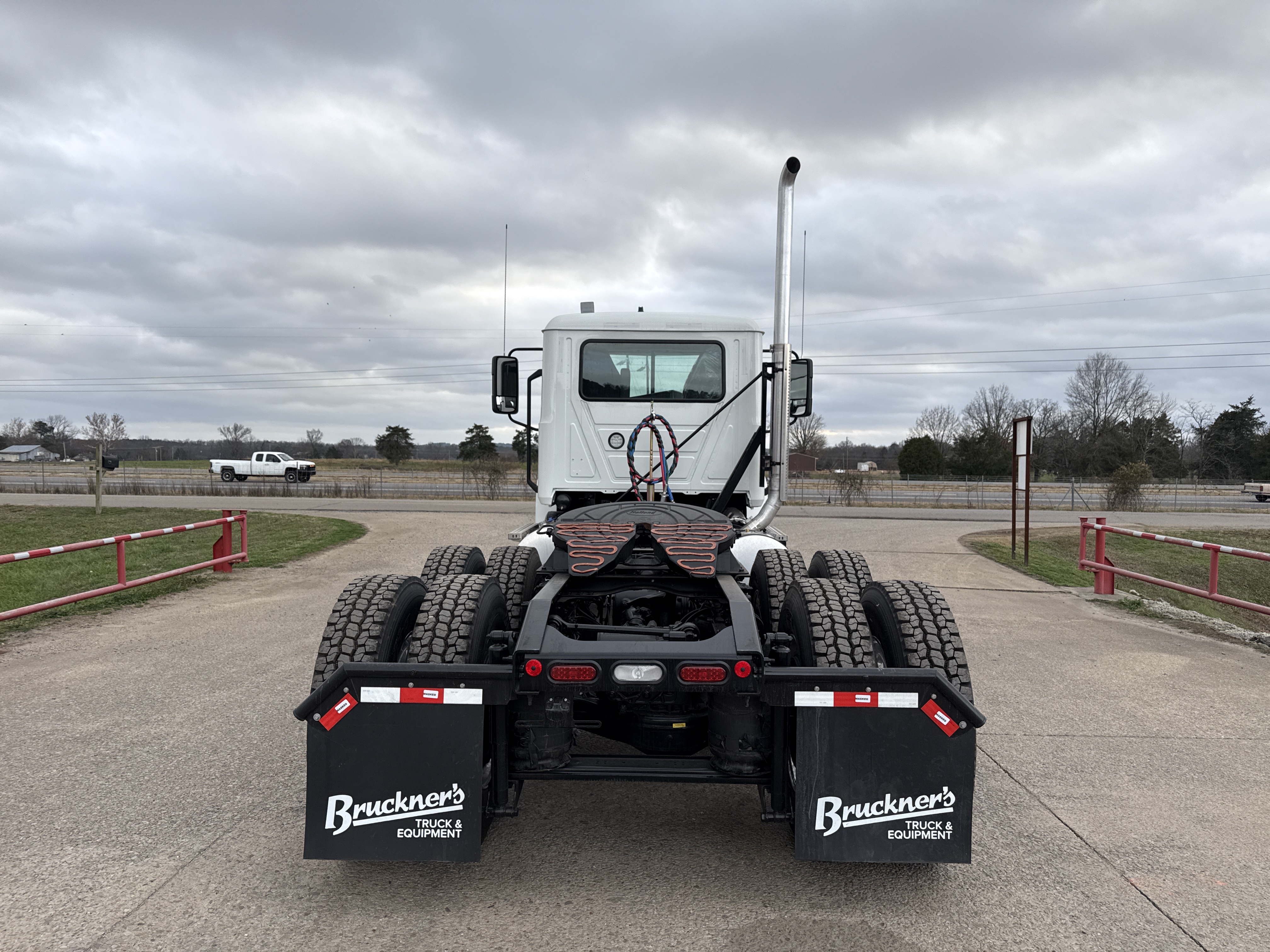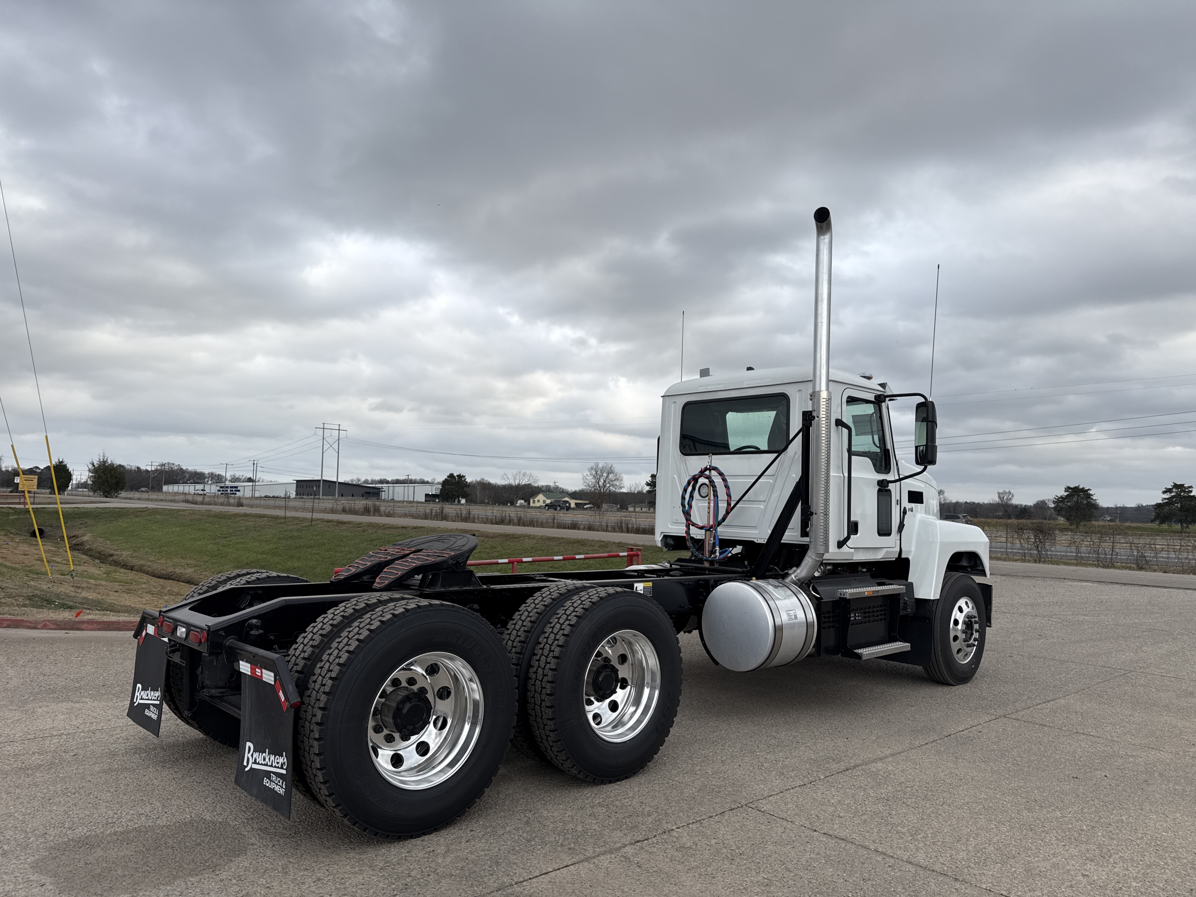 2026 Mack Pinnacle, powerful MP8 - 445C, M-Drive 12 speed OD, 12,000# front axle, Mack S40R air ride w/ 40,000# rear axle, power divider, diff lock, 3:56 ration, ingle exhaust, 213" wb, PDRD-F single RH flange mount PTO, Holland FW 35 stationary 5th wheel, 11R24:5 on polished aluminum wheels. These Bulldogs are ready for work!