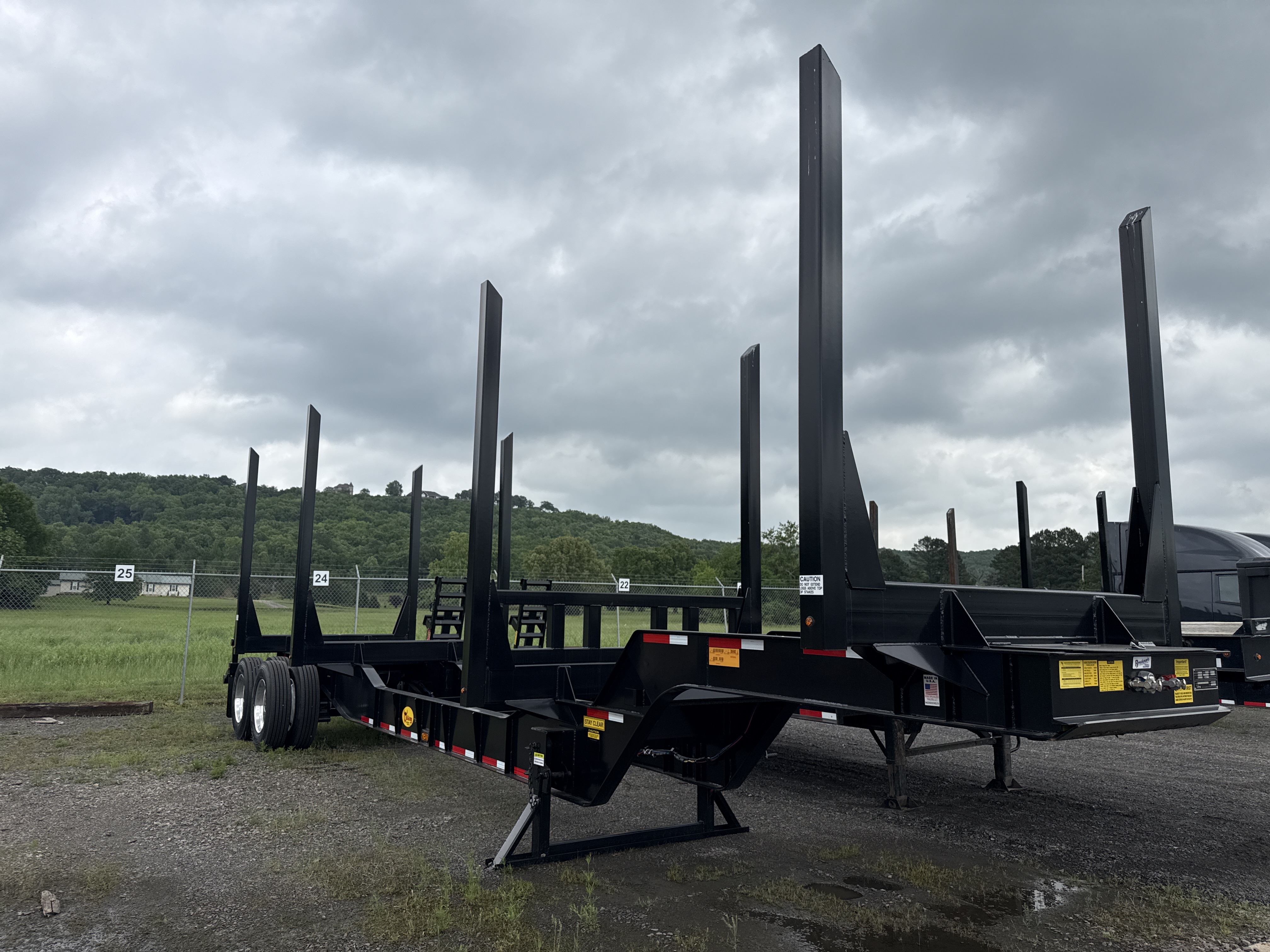 40' Light Weight Plantation- 4 Bolsters, Winch Back Landing Gear, 8" Drop Center, Single point suspension, 11R24.5 Tires, Polished aluminum wheels/outside, Drum Brakes, 5" grapple bar, Viking load cells & electronics, 25,000 lb. Axles, Straps, Price Includes F.E.T.