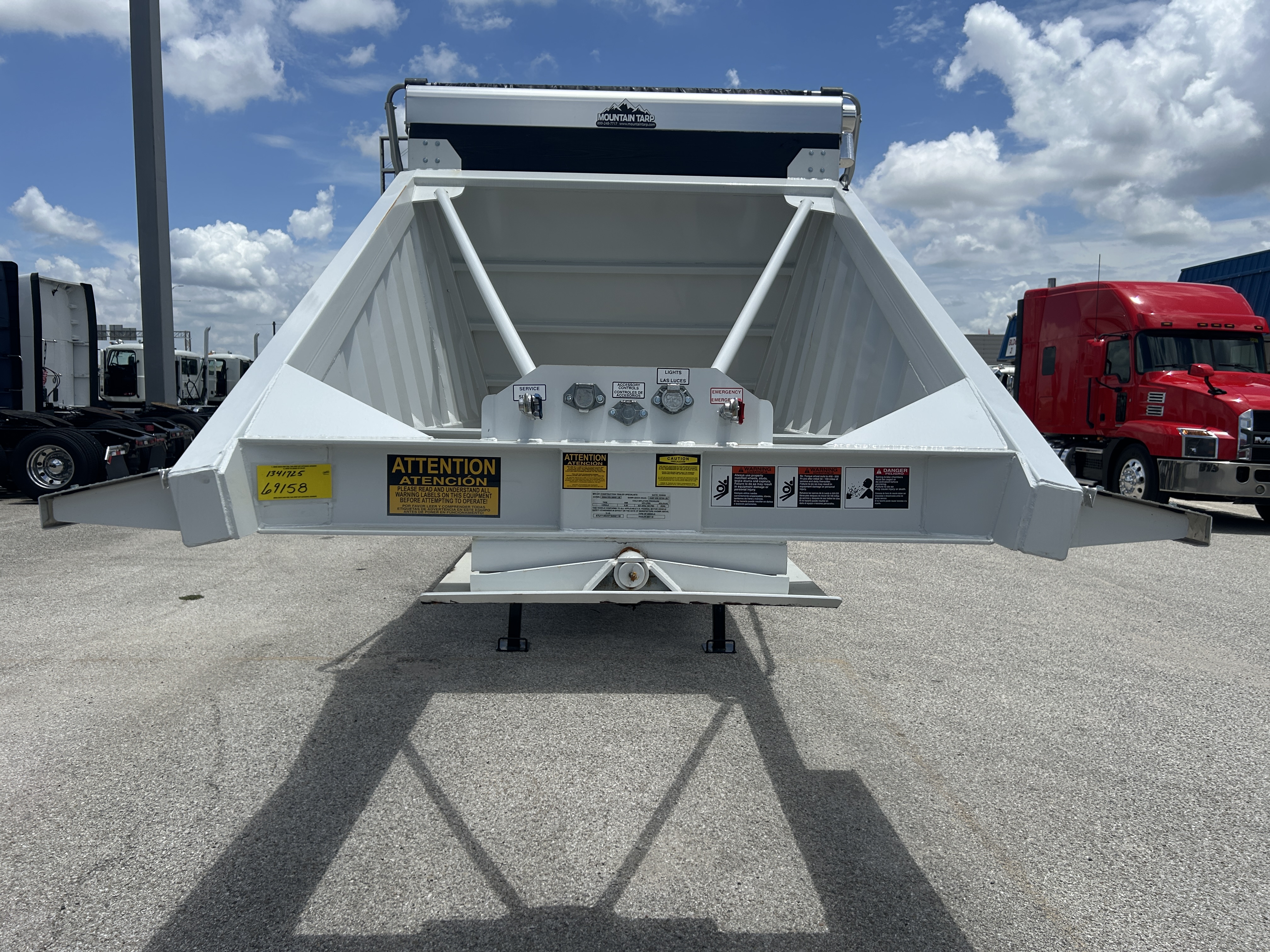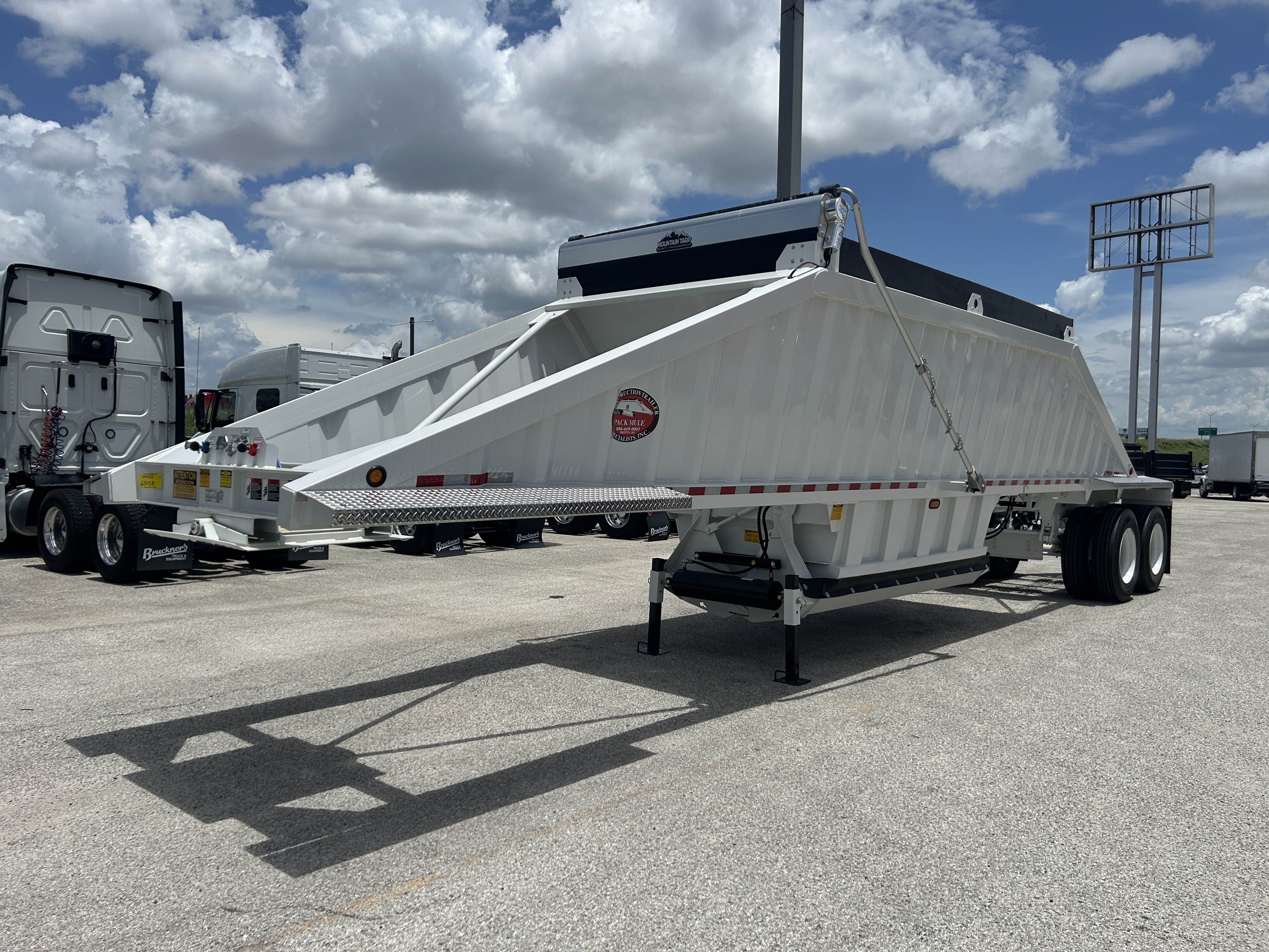 40' Tandem, Spring Ride, Light Weight - No Slope Sheets, 23.5 cu. yds., 10" Boards, Aluminum Diamond Plate Front & Rear Fenders, Mountain Electric Flip & Go Tarp, Steel Wheels, Gate Seals, Extended Push Block, 60 Gallon Air Tank, Quick Release Valves, Windrow Deflector,